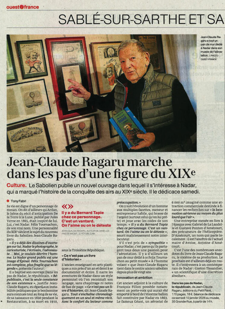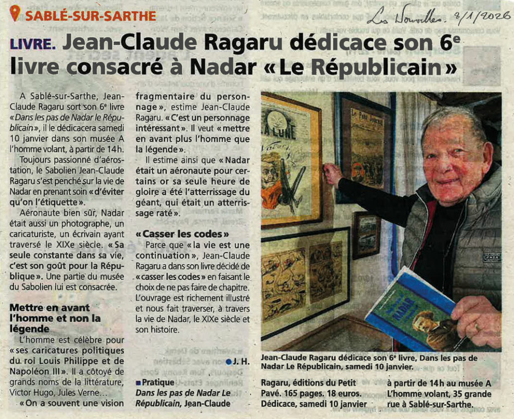CatégoriesRevues de Presse 9 janvier 2026 Par noelle Jean-Claude Ragaru dans la presse pour son ouvrage sur Nadar ! Deux articles sur Jean-Claude Ragaru qui vient de sortir « Dans les pas de Nadar » aux Éditions du Petit Pavé ! Pour tout savoir sur l’ouvrage, retrouvez ici Dans les pas de Nadar ! Navigation de l’articlePrécédent Le programme de décembre 2025 des Éditions du Petit Pavé !
