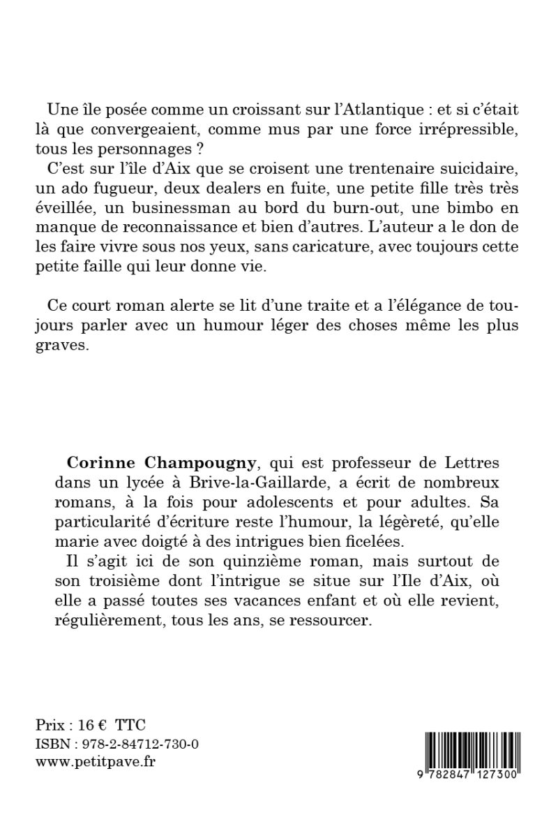 Une île posée comme un croissant sur l’Atlantique : et si c’était là que convergeaient, comme mus par une force irrépressible, tous les personnages ? C’est sur l’île d’Aix que se croisent une trentenaire suicidaire, un ado fugueur, deux dealers en fuite, une petite fille très très éveillée, un businessman au bord du burn-out, une bimbo en manque de reconnaissance et bien d’autres. L’auteur a le don de les faire vivre sous nos yeux, sans caricature, avec toujours cette petite faille qui leur donne vie.